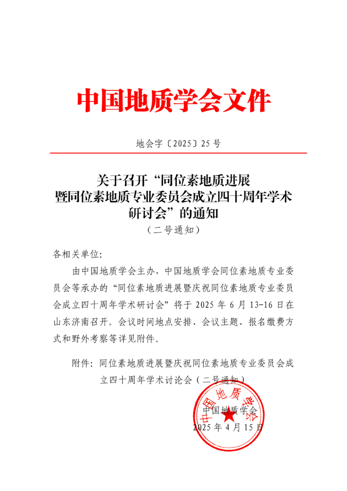 關(guān)于召開“同位素地質(zhì)進(jìn)展暨同位素地質(zhì)專業(yè)委員會成立四十周年學(xué)術(shù)討論會”的通知(一號通知)