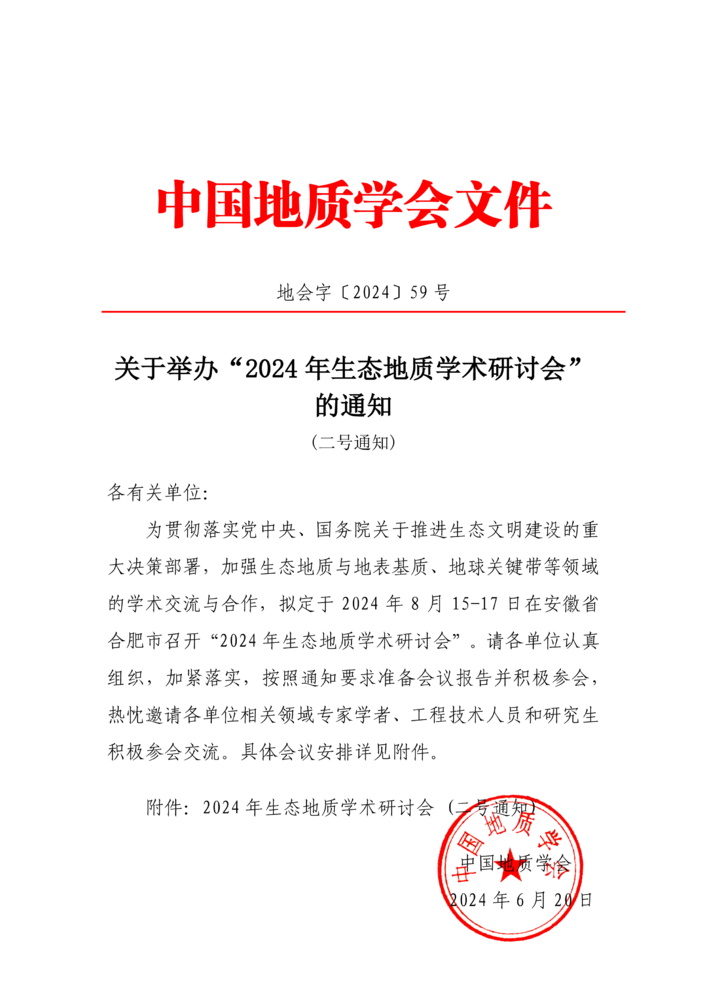 關(guān)于舉辦“2024年生態(tài)地質(zhì)學(xué)術(shù)研討會(huì)”的通知