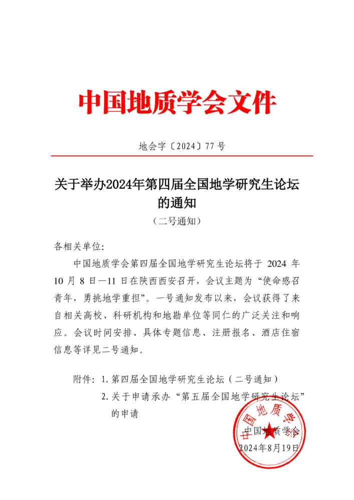 關(guān)于舉辦2024年第四屆全國地學(xué)研究生論壇的通知(二號通知)