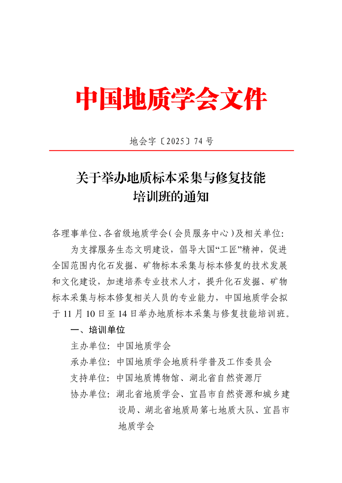 ? 關(guān)于舉辦地質(zhì)標(biāo)本采集與修復(fù)技能培訓(xùn)班的通知 2025-09-26