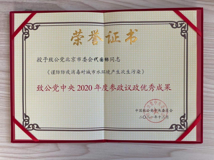 秘書局評選處代國標(biāo)同志獲致公黨中央2020年參政議政優(yōu)秀成果表彰