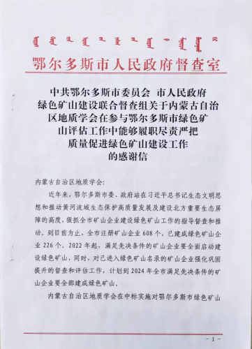 內(nèi)蒙古自治區(qū)地質(zhì)學(xué)會綠色礦山工作受到表揚