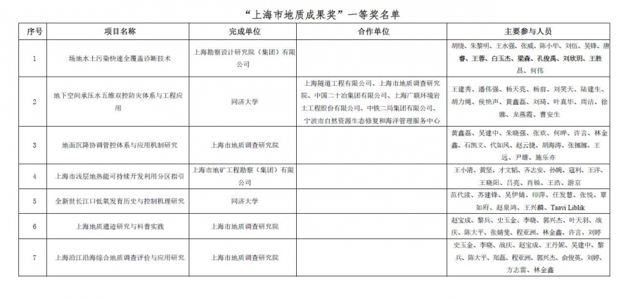 第一屆“上海市地質(zhì)成果獎(jiǎng)”評(píng)選結(jié)果揭曉