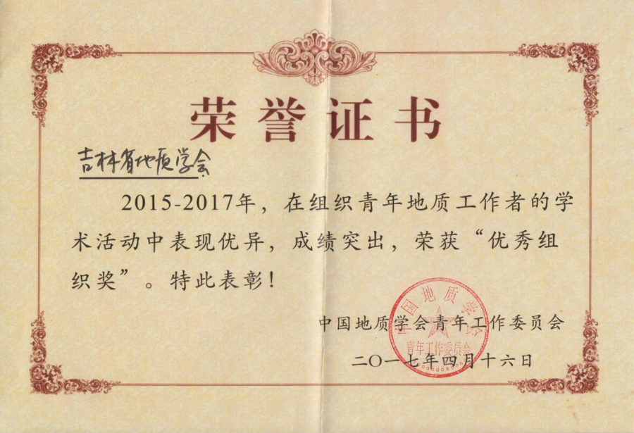 吉林省地質(zhì)學(xué)會獲得“優(yōu)秀組織獎”