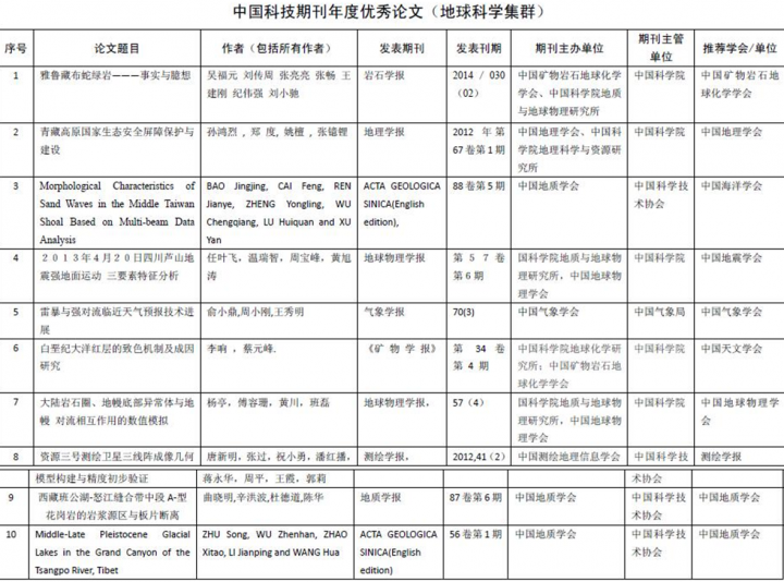 《2016年度中國優(yōu)秀科技論文——地學集群》論文評選揭曉