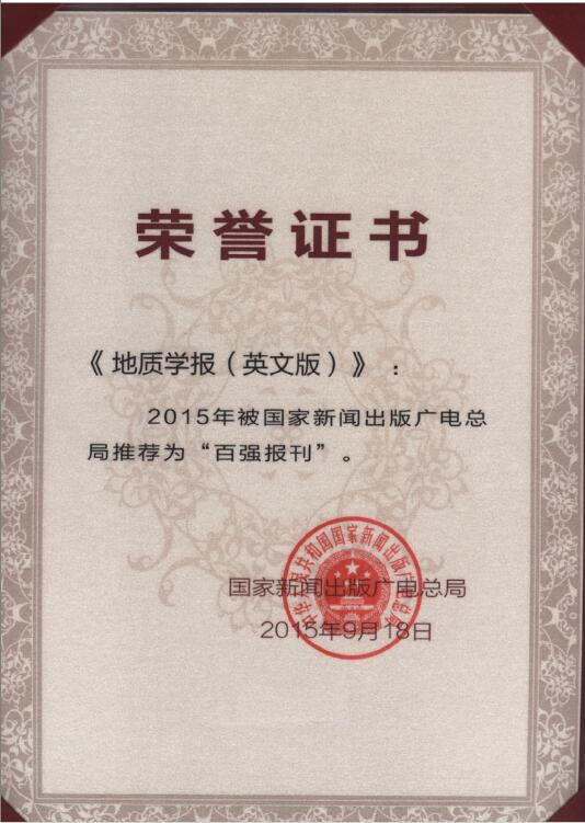祝賀《地質(zhì)學(xué)報(bào)》英文版榮獲2015年國(guó)家新聞出版廣電總局“百?gòu)?qiáng)報(bào)刊”稱(chēng)號(hào)