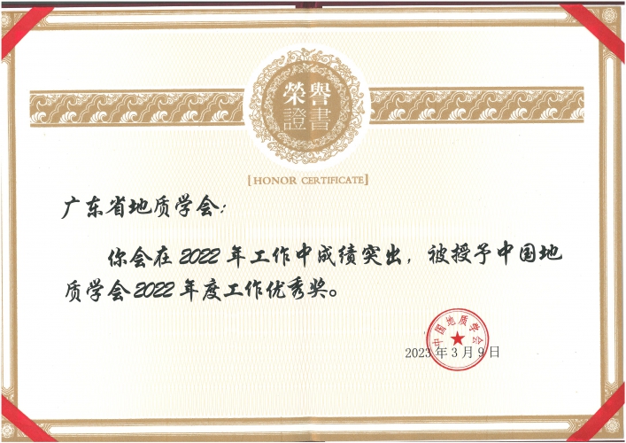? 廣東省地質學會再次榮獲“中國地質學會年度工作優(yōu)秀獎” 2023-03-23
