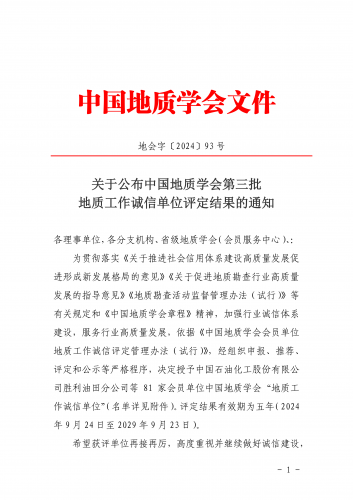? 廣東三家地勘單位獲評(píng)中國(guó)地質(zhì)學(xué)會(huì)第三批地質(zhì)工作誠(chéng)信單位 2024-10-16
