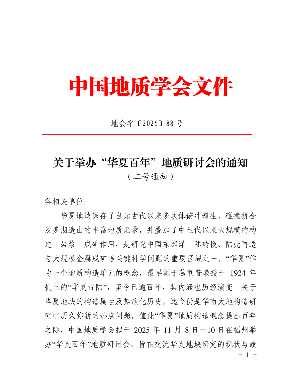 關(guān)于舉辦“華夏百年”地質(zhì)研討會(huì)的通知(二號(hào)通知)